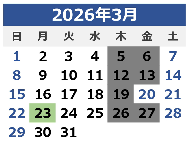 【センター営業日】月・火・水 12:00~20:00(最終受付19:00) 土・日・祝 10:00~18:00(最終受付17:00)